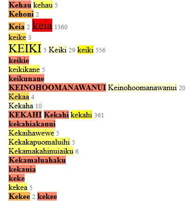 Luckily, I’ve done this a few times before, and developed a few tools to help me make this easier. During my preparation, I tagged each fragment of text in my file with the language it is written in. This enables me to create word-lists, which I can inspect. Words that occur many times can be safely ignored, but those that are rare or unique may need some further inspection. Since I color-code by frequency, rare words jump out.